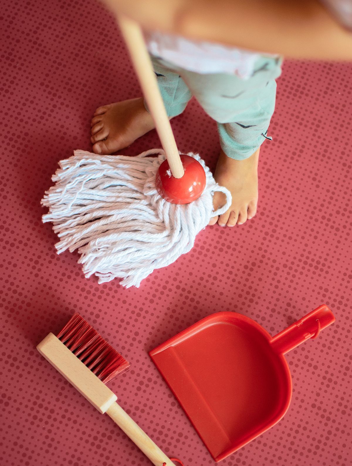 Por ejemplo, útiles de cocina o de limpieza, así como materiales de manualidades, como ceras, temperas,