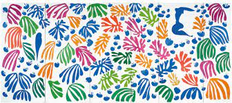 Herni Matisse enfermo joven por lo que permanecía en cama la mayor parte del tiempo, el utilizaba la pintura como una forma de entretenimiento, cuando ya no pudo manejar los pinceles con la maestría y el ímpetu de un joven artista. Su solución fue de lo más colorida: recortar y pegar formas simples de colores para crear collages (o cut-outs) tan sencillos como expresivos con la intención de crear un pequeño jardín por el que pasear mientras estaba en cama.