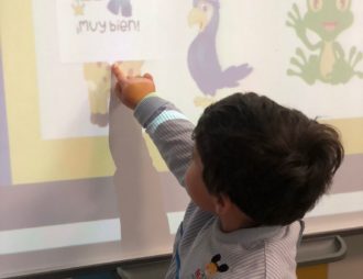 En nuestras Escuelas Infantiles Menuts, la pizarra digital táctil, nos brinda la oportunidad de que los alumnos observen mientras realizan actividades educativas junto a sus compañeros. Las hemos instalado en el aula multiusos de tal forma que las podamos utilizar cuando lo necesitemos.