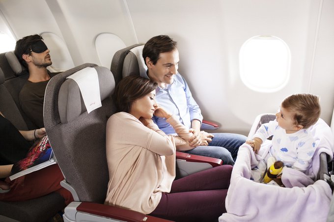 En vuelos transoceánicos es posible pedir (siempre que haya disponibilidad) cuna en el avión (no sube el precio por ello), siempre que el bebé no supere los 10-11 kgs. Por cierto, cuando se hace un vuelo de este tipo, es recomendable que el horario del vuelo coincida con las horas de sueño del bebé porque así el peque se pasará el tiempo durmiendo y no resultará tan pesado el viaje.